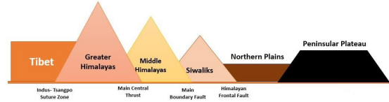• The Trans Himalayas are separated from the Greater Himalayas by the Indus-Tsangpo Suture zone. Many large glaciers are found here whose order from west to east is Batura → Biafo →Hispar → Baltoro → Siachen.