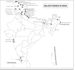 Important Passes Burzil and Zojila in Kashmir.Baralacha la and Shipkila in Himachal.Thaga la, Nitipaas and Lipulekh in Uttarakhand.Nathu la and Jelep la in Sikkim