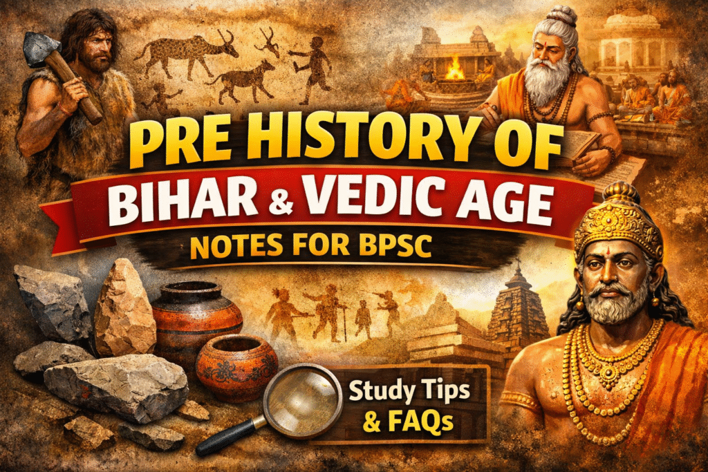 The Pre-History of Bihar and Vedic Age are among the most important and scoring topics for BPSC Prelims and Mains. In this blog, you’ll get exam-ready notes, important facts, and FAQs to boost your preparation.