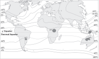 • Highest temperature not recorded at equatorrather a bit north of it. Sunlight falling on the Equator generates rising air currents that help in the formation of clouds over equatorial regions, which then cause rains and thunderstorms.