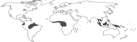 • Found in Central America, West Indies, northeastern Australia, the Philippines, parts of East Africa, Madagascar, the Guinea Coast and eastern Brazil.