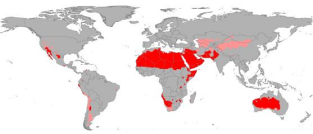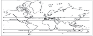 • Distribution: around the Mediterranean Sea, along the west coast of continents in subtropical latitudes between 30°-40° latitudes.