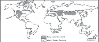 • Distribution: Bordering the deserts, away from the Mediterranean regions and in the interior continents are the temperate-grasslands.